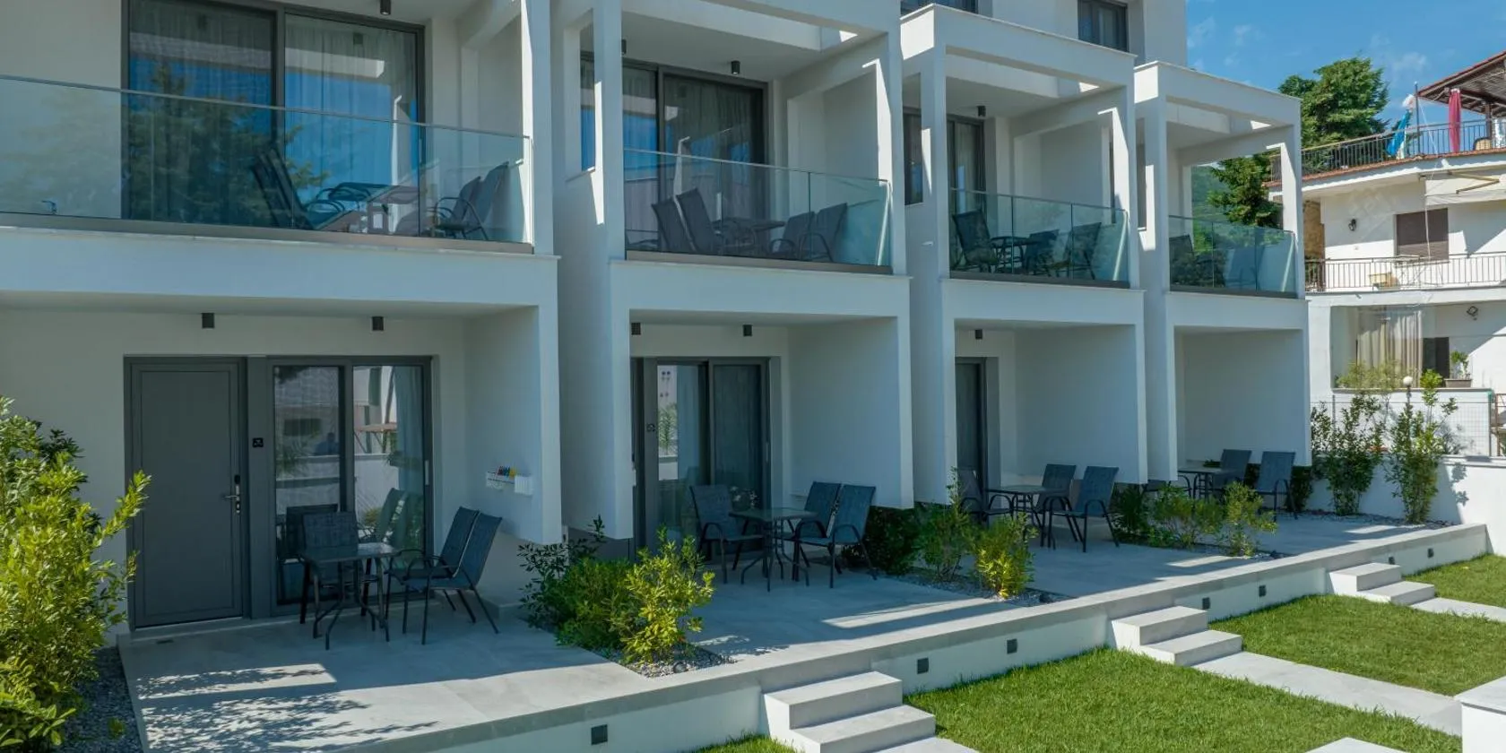 Horeizons Modern Living nabízí sezónní venkovní bazén, zahradu a ubytování s klimatizací, terasou a bezplatným Wi-Fi. Pláž Nea Vrasna se nachází 200 metrů odtud.