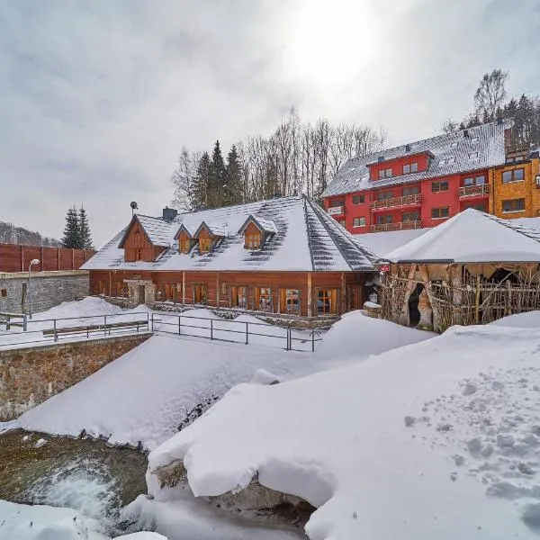 Chata U lesa se nachází ve Svobodě nad Úpou a může se pochlubit balkonem s výhledem na bazén a do zahrady. Těšit se můžete také na sezónní venkovní bazén, vířivku a termální koupel.