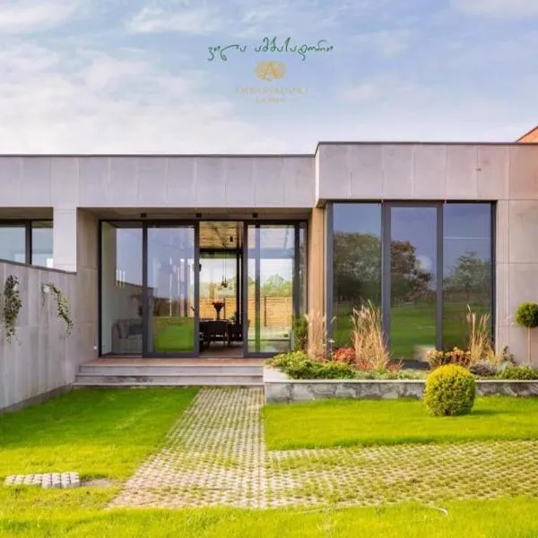 Menawarkan kolam renang luaran, teres, dan restoran, Villa ambassadori menyediakan penginapan di Kachretʼi dengan WiFi percuma dan pemandangan taman.