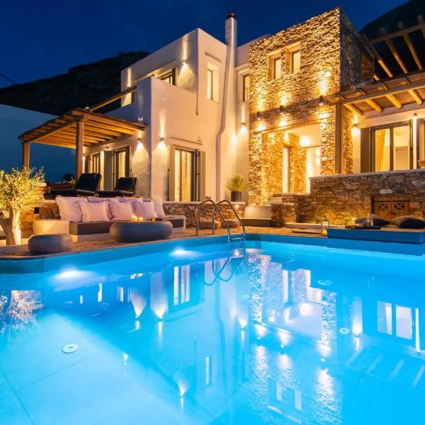 Filadaki Villas se nachází v destinaci Kamarai a nabízí sezónní venkovní bazén, zahradu, sdílený lounge, terasu a výhled na moře.