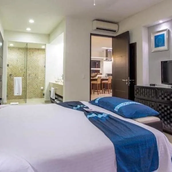 ヌエボ・バジャルタ・ノースビーチからほど近いElegante departamento en Nuevo Vallartaはブセリアスにある宿泊施設で、無料レンタル自転車、専用ビーチエリア、屋外プール、フィットネスセンターを提供しています。この宿泊施設では、テラス、卓球台、無料専用駐車場、無料WiFiを提供しています。...