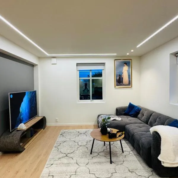 Romslig leilighet i underetasje se nachází v destinaci Mysen a nabízí ubytování s možností vlastního stravování, s patiem a bezplatným Wi-Fi.