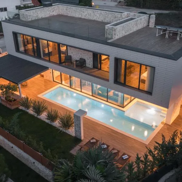 Villa Antonci-18, pool, 3 houses, jacuzzi, private territory se nachází v destinaci Antonci a nabízí sezónní venkovní bazén, zahradu, sdílený lounge a ubytování s bezplatným Wi-Fi a výhledem do...