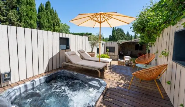 Échappée Mistral - Détente Jacuzzi privé & Brasero se nachází v destinaci Eyragues a nabízí ubytování s bezplatným Wi-Fi a klimatizací, sezónní venkovní bazén a terasu.