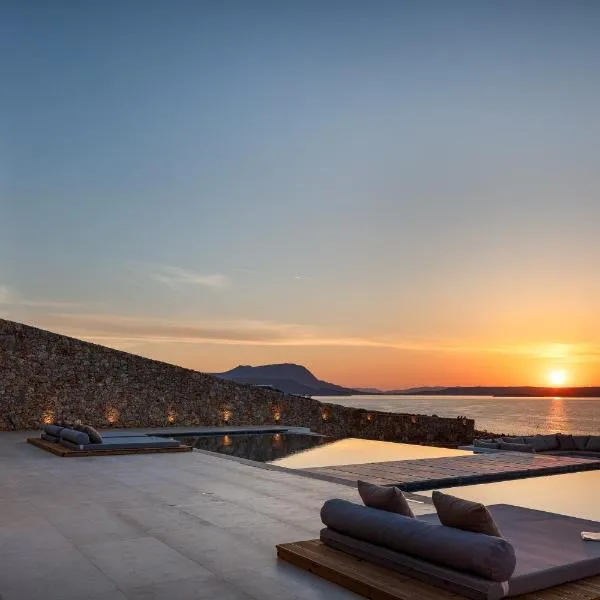 Boutique villa Dionysos Heated Pool & Sauna se nachází v destinaci Kókkinon Khoríon a může se pochlubit terasou s výhledem na moře a na hory.